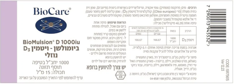 ויטמין D3 של חברת BioCare מוגש בצורת אמולסיה לספיגה אופטימלית.