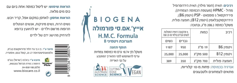 - שילוב של ויטמין B6 פעיל במינון גבוה, ויטמין B12 וחומצה פולית.