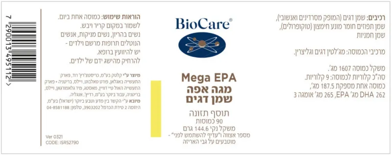 מגה אפה הינו שמן דגים מרוכז המכיל מינונים גבוהים של חומצות שומן אומגה 3 המשתתפות בתהליכים ביוכימיים בגופנו.