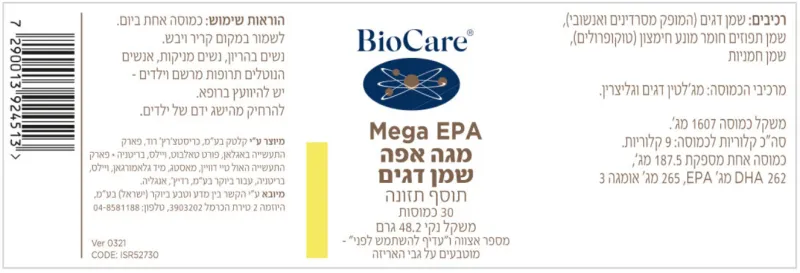 מגה אפה הינו שמן דגים מרוכז המכיל מינונים גבוהים של חומצות שומן אומגה 3 המשתתפות בתהליכים ביוכימיים בגופנו.