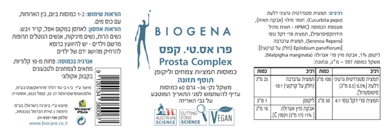 הפורמולה מכילה שילוב של מיצוי/תמציות צמחים שעשוי למתן, לשפר ולהקל על סימפטומים של הגדלת ערמונית שפירה.