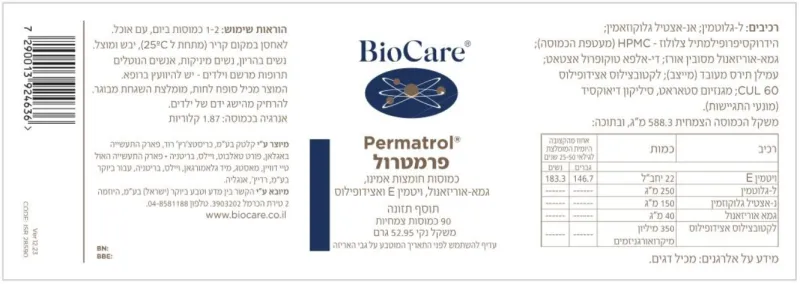 • מכיל תערובת של חומצות אמינו, גמא אוריזאנול ויטמין E ואצידופילוס.