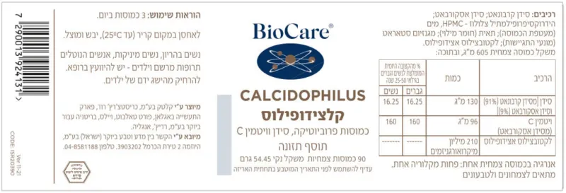 קלצידופילוס מספק מקור ביולוגי טהור לסידן אורגני (ללא חלב) בתוספת פרוביוטיקה מסוג לקטובצילוס אצידופילוס, אשר במהלך תהליך הגידול שלה, הבקטריה הידידותית מוזנת בסידן קרבונט. לאחר שהבקטריה עיכלה מספיק סידן היא עוברת תהליך ייבוש בהקפאה.