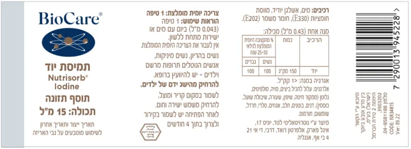 • טיפה אחת בלבד מהתמיסה שלנו מספקת את הכמות היומית הדרושה של יוד.