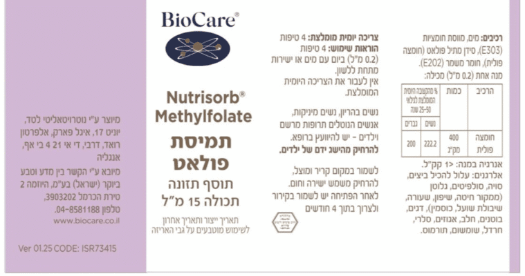 מתיל פולאט בנוזל, לספיגה יעילה וזמינות ביולוגית גבוהה.