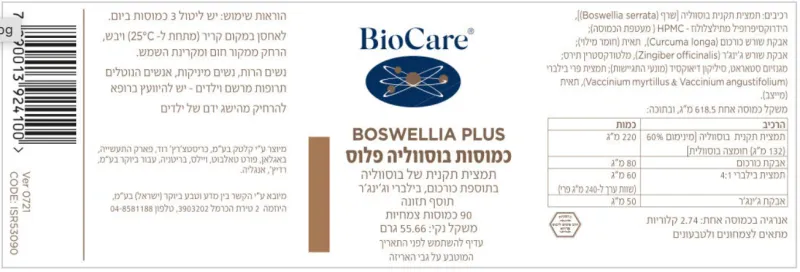 - מכיל חומצה בוסוולית (Boswella Serrata), מיצוי כורכום מצמח הכורכום (Turneric) ג’ינגר ובילברי (תמצית פרי אוכמניות). המספקים מקורות של נוגדי חמצון ביולוגיים פעילים.